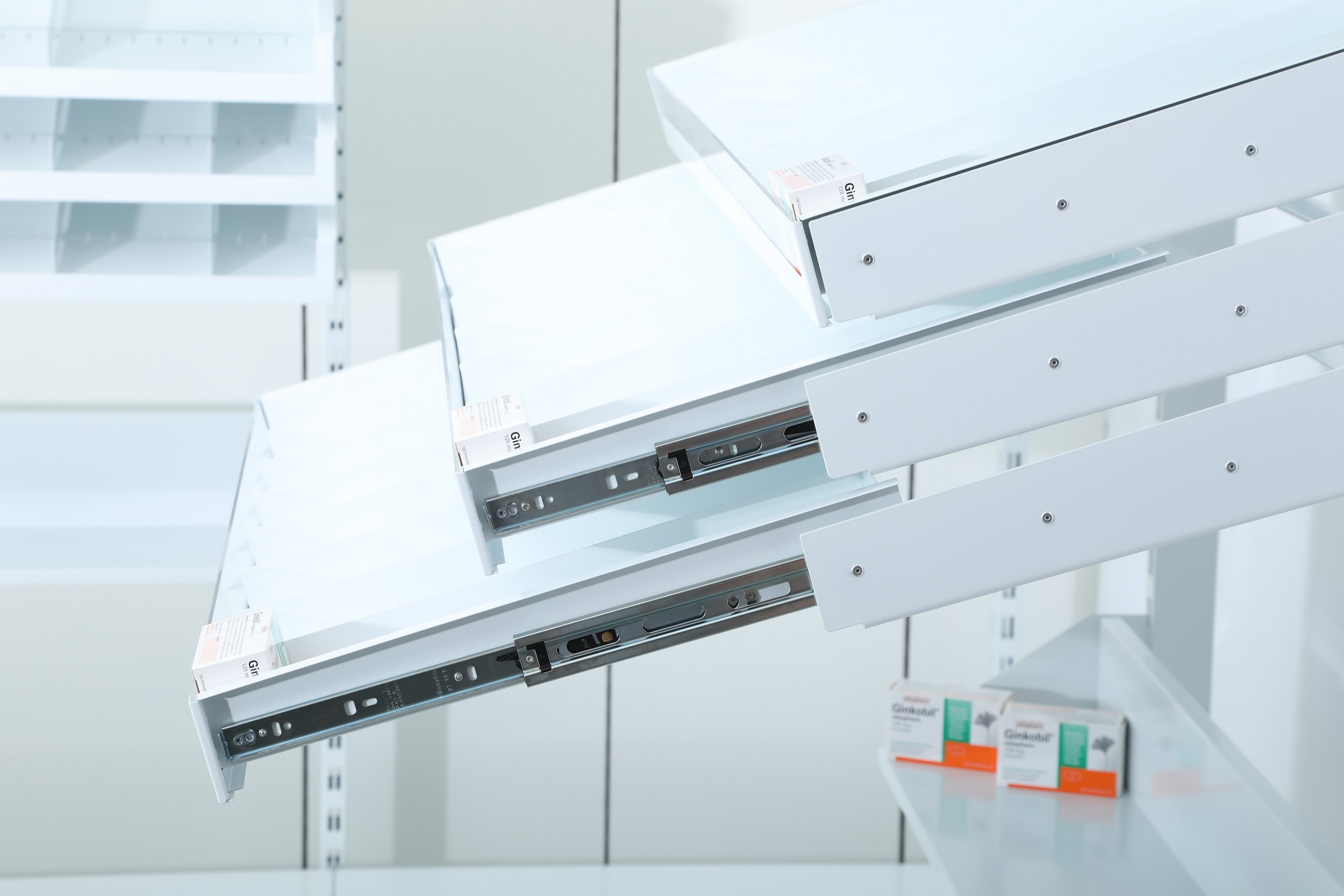 Комплексните изисквания на съвременните аптеки като оптимално и сигурно съхранение, висококачествено представяне на продуктите и идеални условия за работа и продажби, пораждат необходимостта от системи, които са максимално гъвкави и ефективни. Такива са аптечните системи на shoptec, проверени и изпитани във времето: